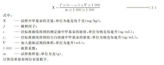 17.4.3混合標(biāo)準(zhǔn)使用液(1.00!g/mL,以Hg計):準(zhǔn)確移取0.50mL甲基汞標(biāo)準(zhǔn)儲備液和0.50mL氯化汞標(biāo)準(zhǔn)儲備液,置于100mL容量瓶中,以流動相稀釋至刻度,搖勻。此混合標(biāo)準(zhǔn)使用液中,兩種汞化合物的濃度均為1.00P4g/mL。現(xiàn)用現(xiàn)配
