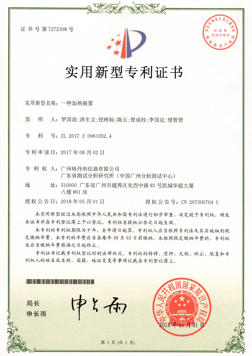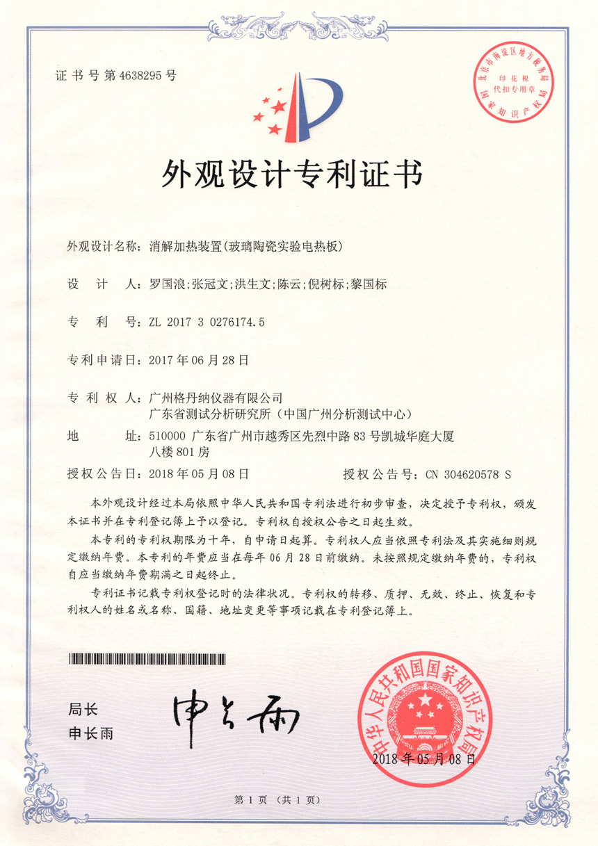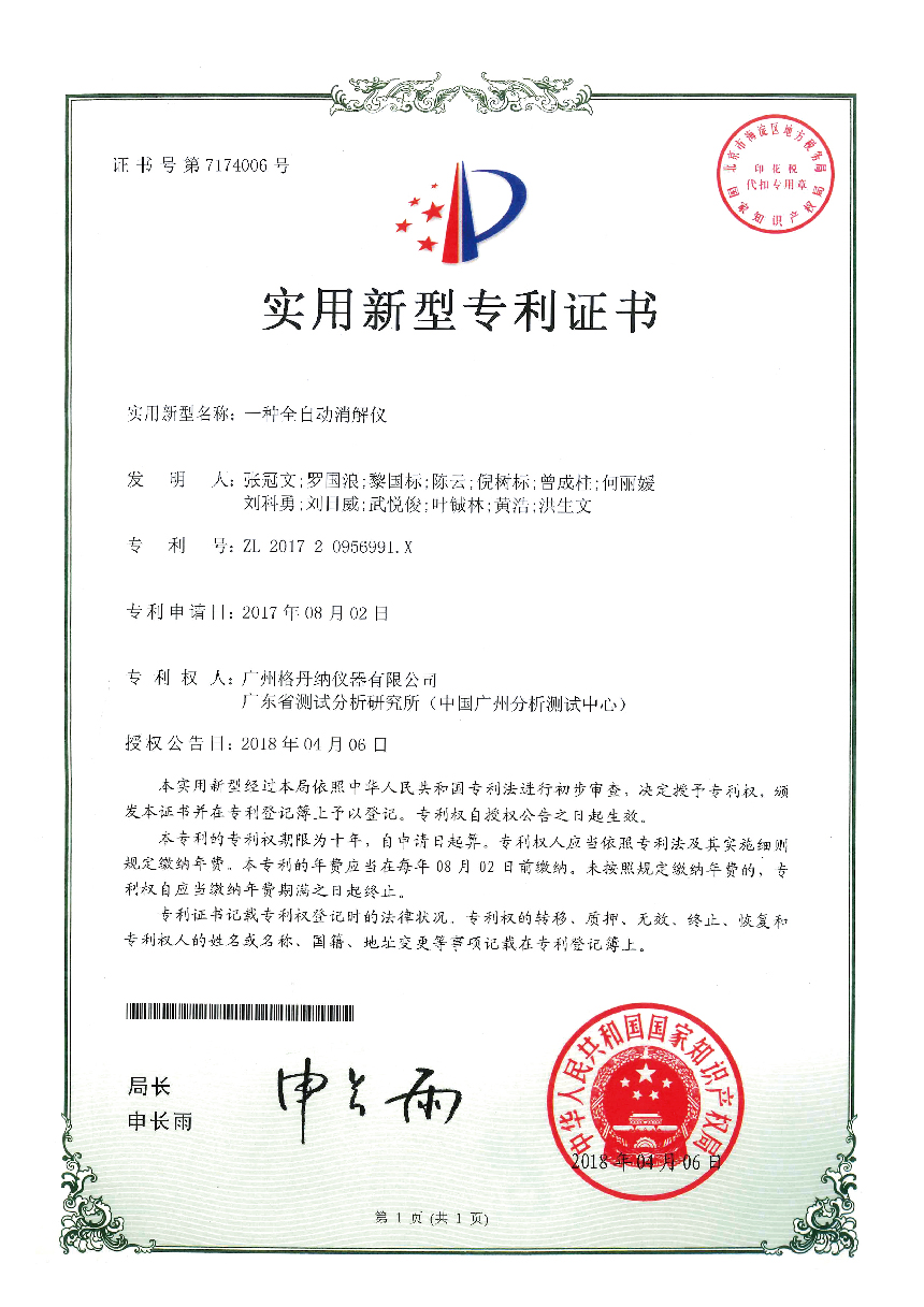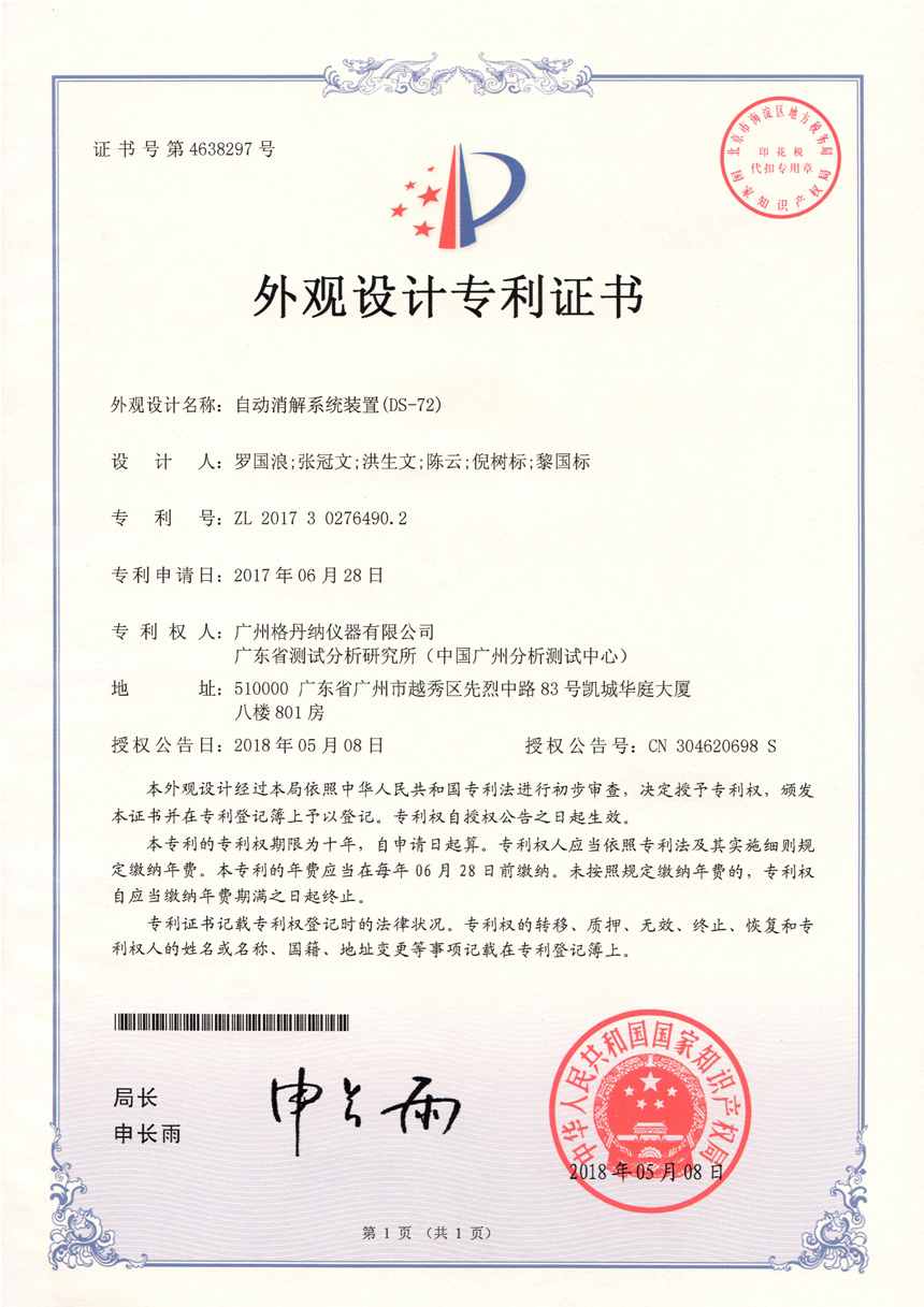 • 一種全自動消解儀-實用新型專利證書