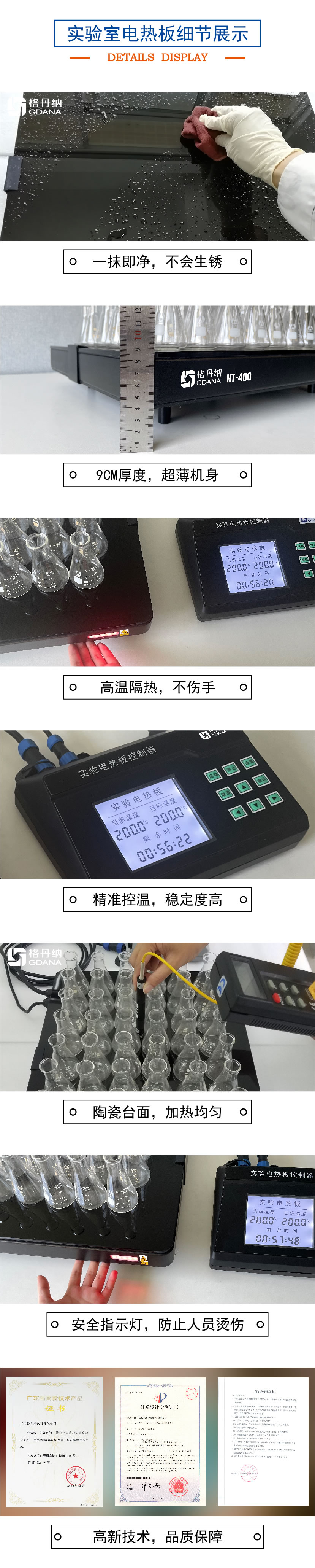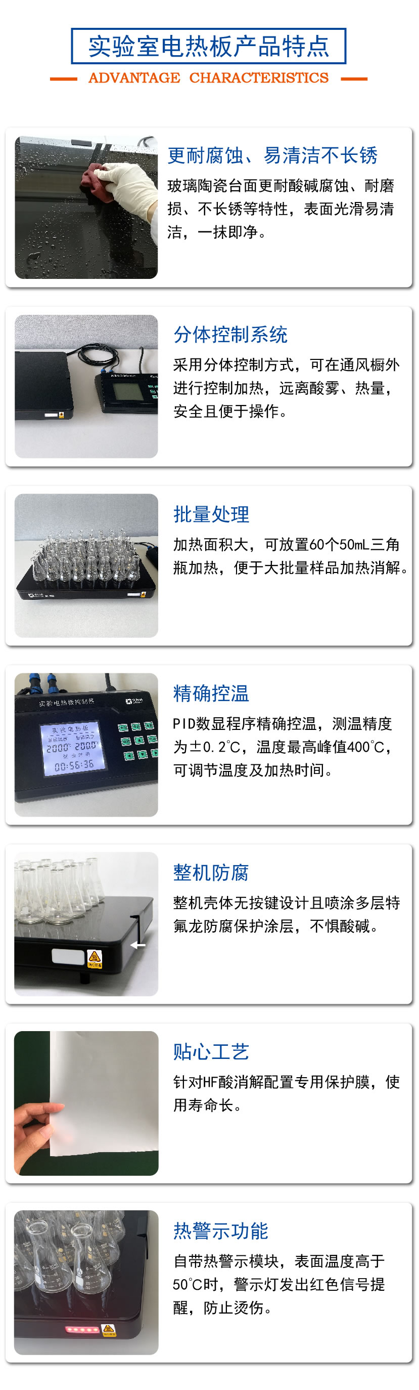 HT-400陶瓷加熱板專用于無(wú)機(jī)化學(xué)元素分析時(shí)對(duì)各類樣品作加熱、消煮、趕酸用的恒溫加熱裝置。臺(tái)面具有耐酸堿,不生銹等特性;分體PID程序數(shù)顯控溫,是實(shí)驗(yàn)室樣品預(yù)處理好助手。