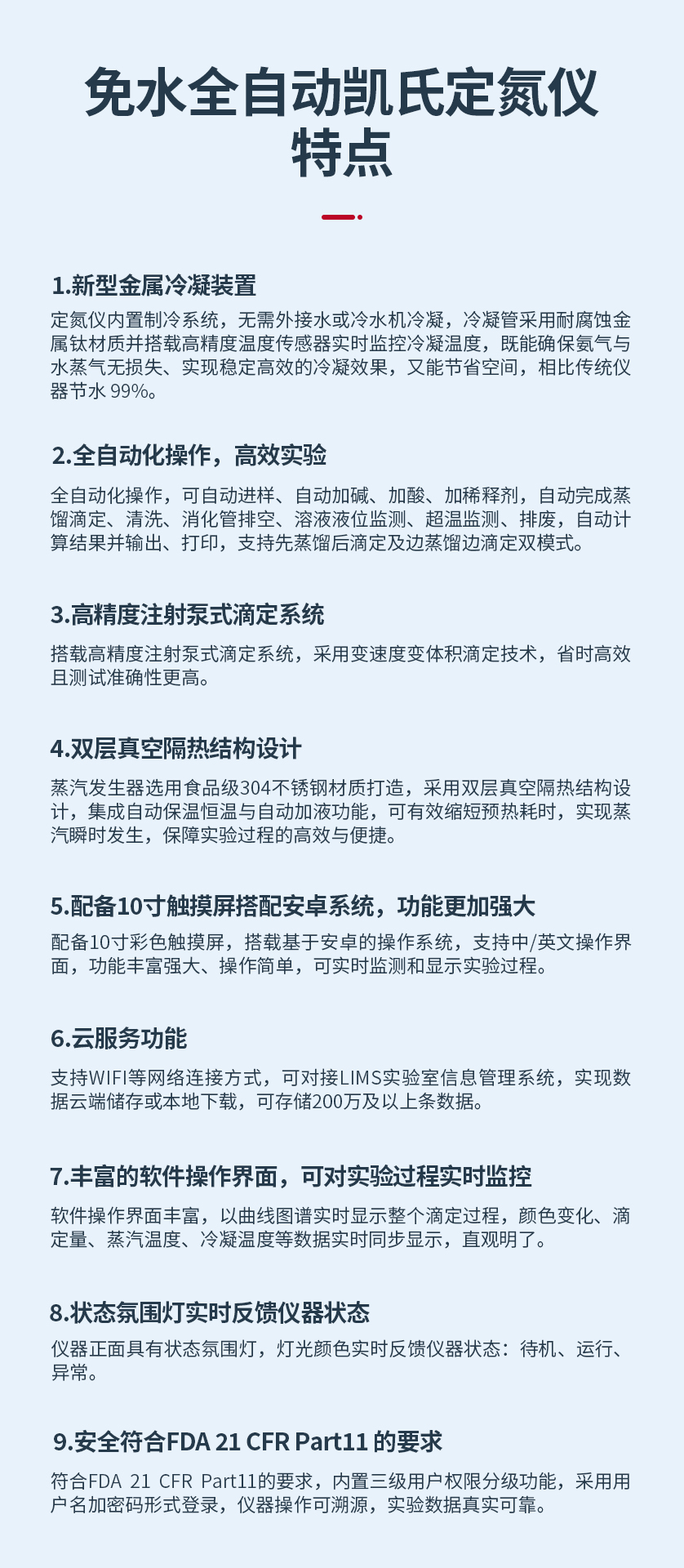 自動(dòng)性:自動(dòng)添加試劑、蒸餾滴定和計(jì)算