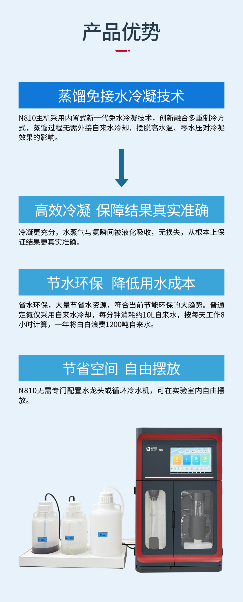 N810無需專門配置水龍頭或循環(huán)冷水機(jī),可在實(shí)驗(yàn)室內(nèi)自由擺放。