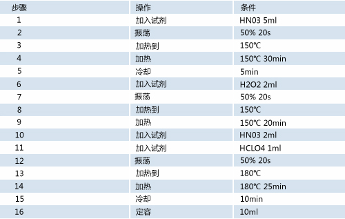 濃硝酸(MERK優級純)、雙氧水(GR)和高氯酸(GR);銅、鎘、鉻、鋅4種重金屬元素標準溶液 (100mg/L)。