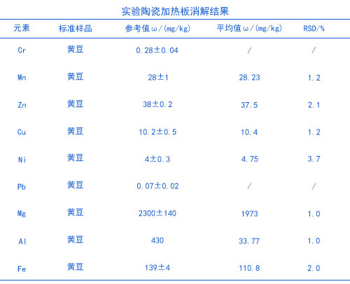 實驗電熱板消解黃豆測定重金屬基本滿足要求,數據比較穩定可靠,電熱板消解可以大批量處理分析樣品,節省了時間,實驗室比較常規的儀器設備就可以滿足實驗操作了。