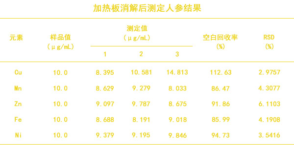 實驗陶瓷加熱板消解后測定人參結果